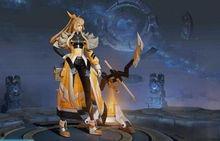 伽罗的武器造型也有所改变,不再是传统的弓箭,而是一把优雅的长剑。剑身流转着紫色的光芒,剑柄处镶嵌着一颗璀璨的宝石,仿佛是夜空中最亮的星。